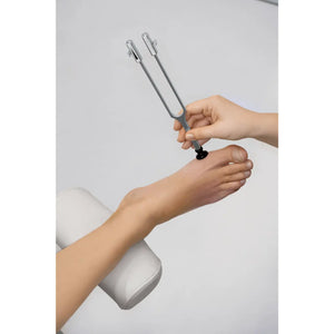 La sensibilité aux vibrations est testé à l'articulation du gros orteil, à la tête du péroné et d'autres proéminences osseuses de premier plan. acier inoxydable.