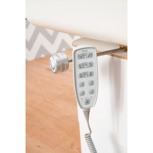 Instead of the foot control, you can use the handheld remote to control the seat height and tilt with the touch of a button.