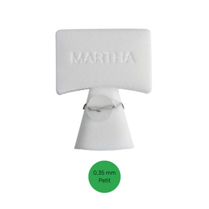 | Martha | Ongle qui s'élargit fortement vers l'avant et qui est légèrement enroulé | Simple accroche 12mm | Vert 0,35mm petit |