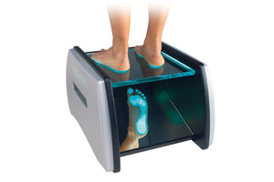 Il se compose d'une structure en bois laqué avec une partie supérieure transparente sous laquelle se trouve un miroir incliné reproduisant fidèlement la plante des pieds et mettant en évidence les différentes pressions des appuis.