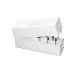 Les instruments rotatifs (fraises, meuleuses) doivent également être protégés. Important pour le stockage après retraitement. Cette robuste boîte en plastique avec couvercle rabattable et socle enfichable pour 30 fraises et meuleuses au maximum convient parfaitement. Vous protégez ainsi vos instruments pendant le transport pour une utilisation ambulatoire et prouvez votre compétence en matière d'hygiène.