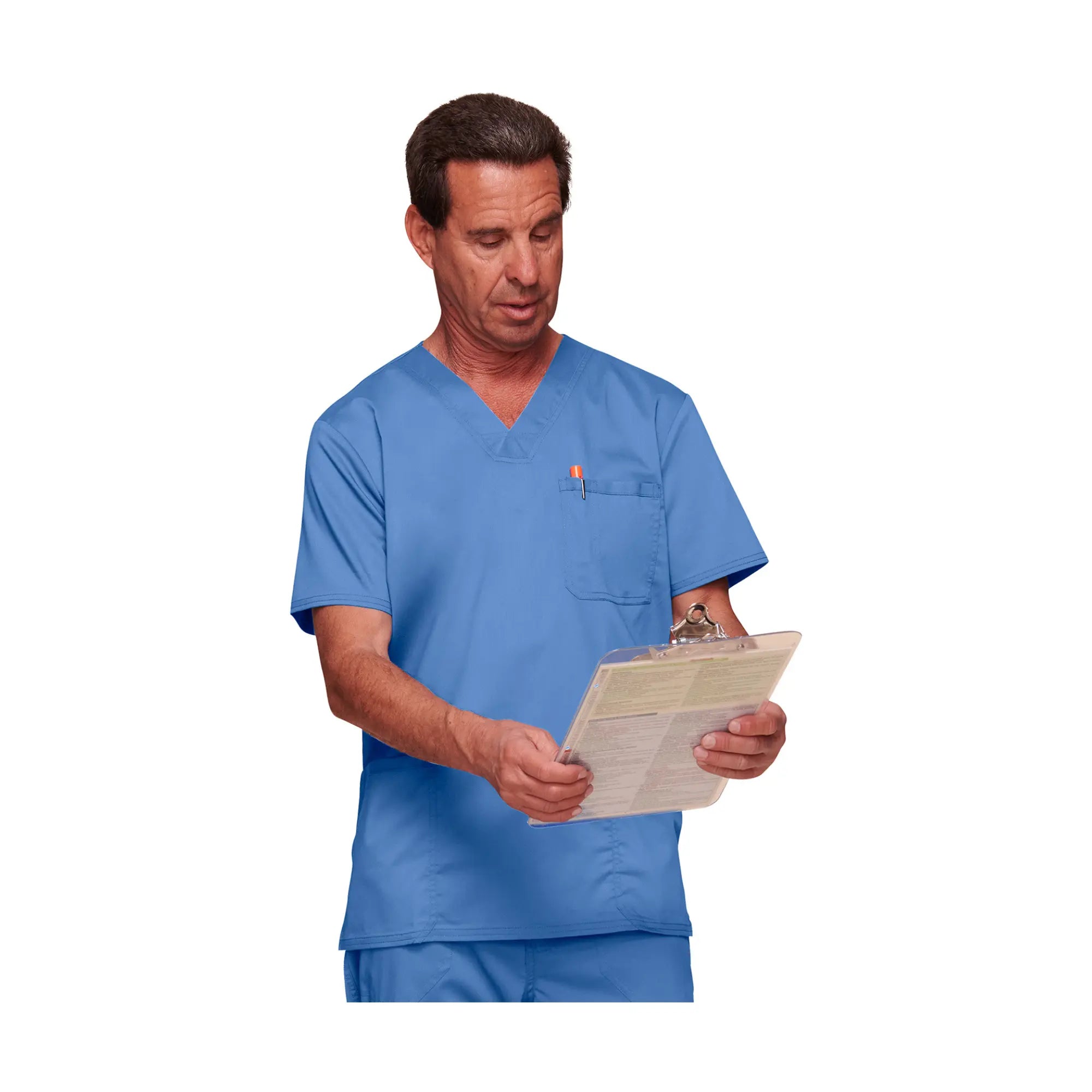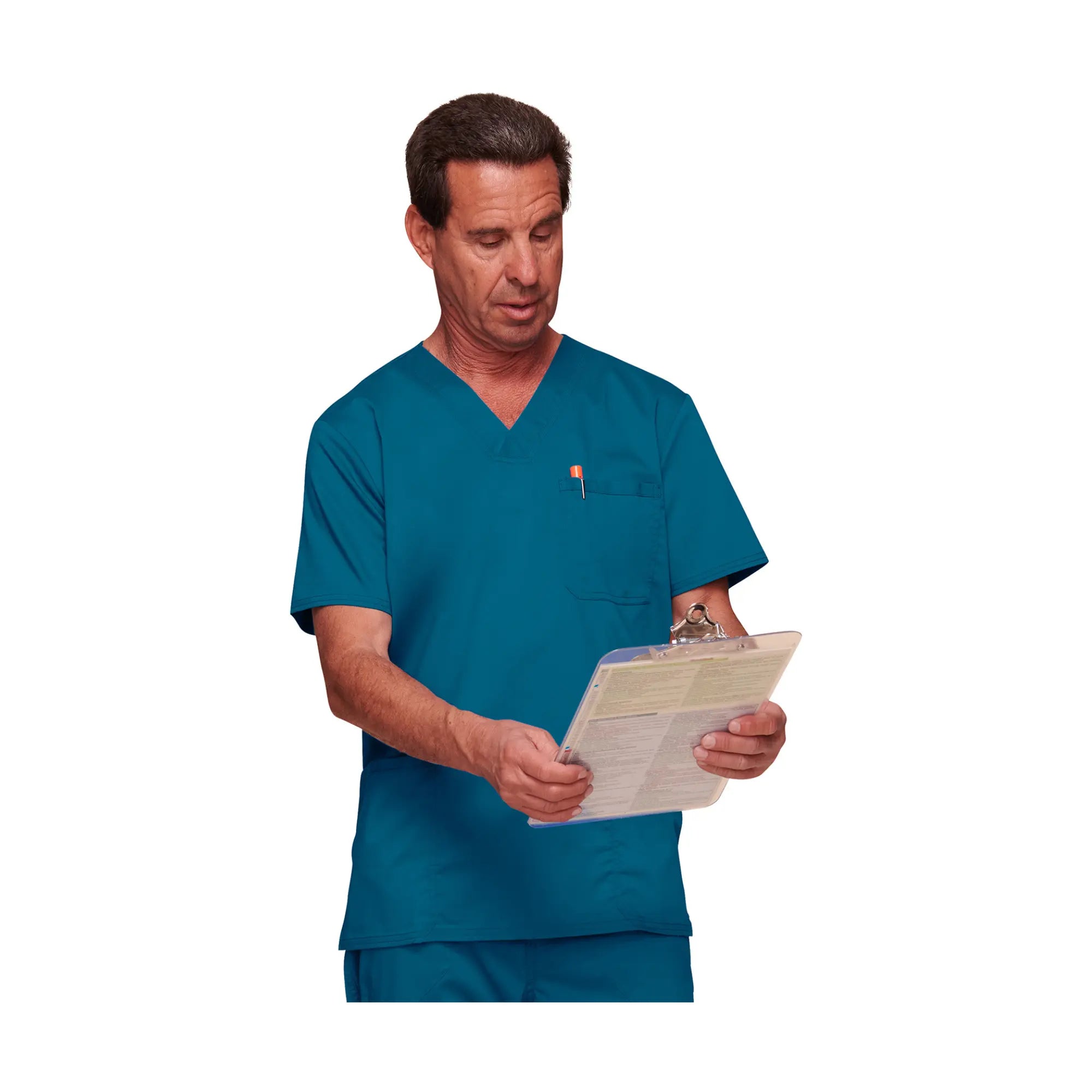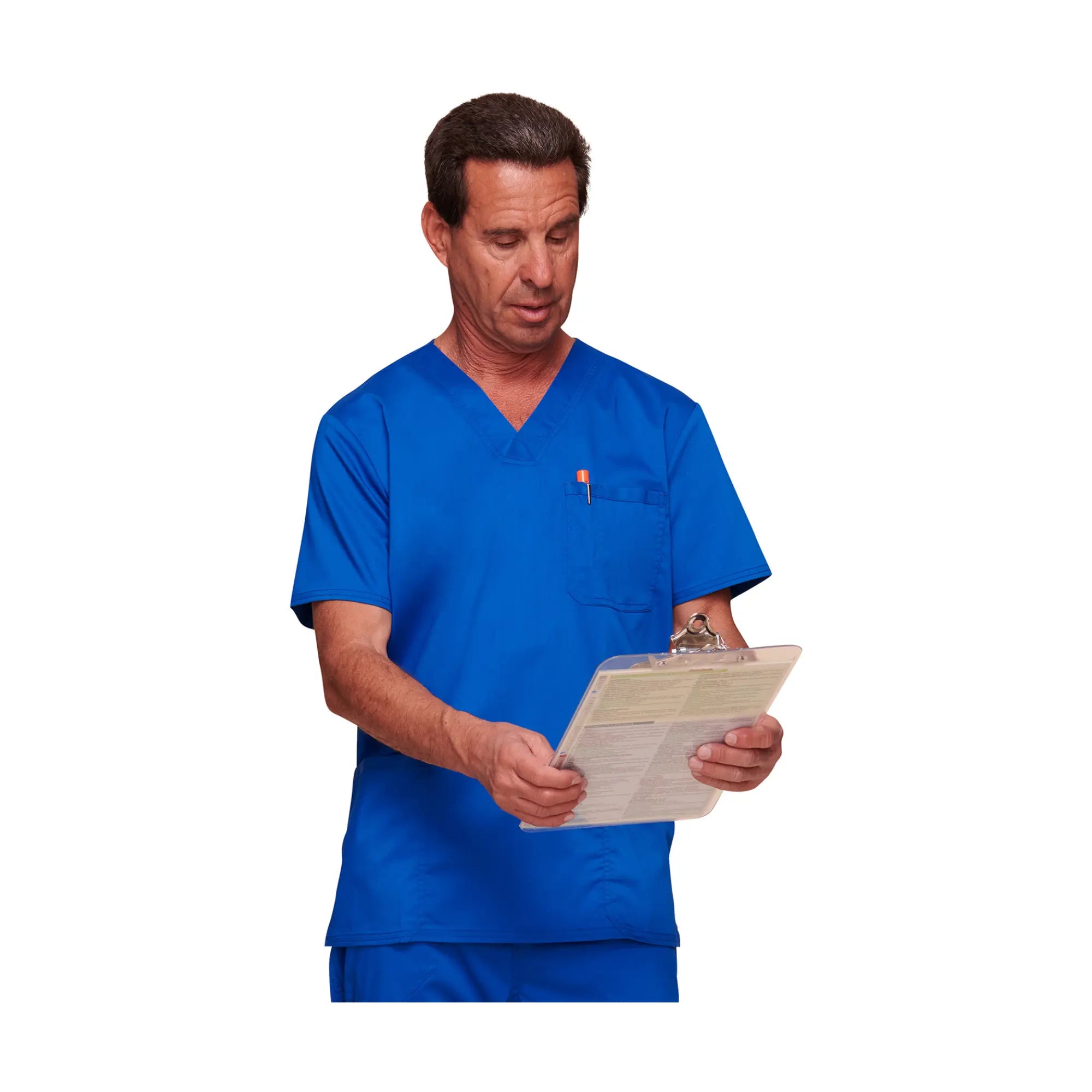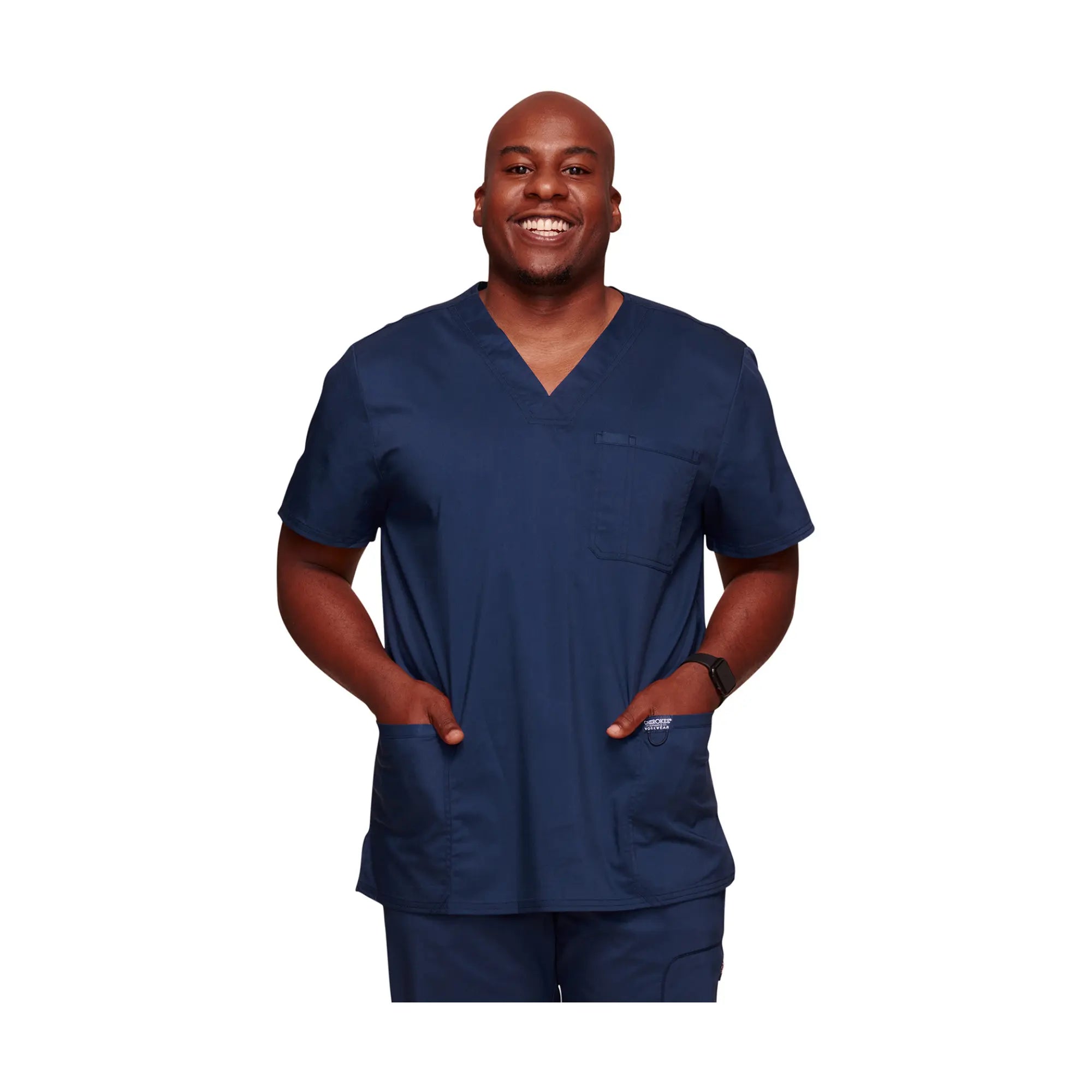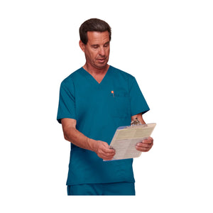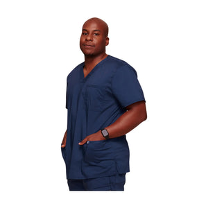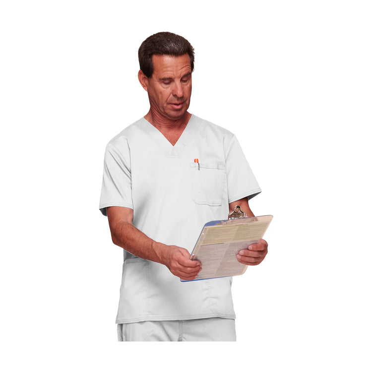 Cette tunique moderne col en V comprend 3 poches, une étiquette logo, un empiècement dos et des fentes latérales.