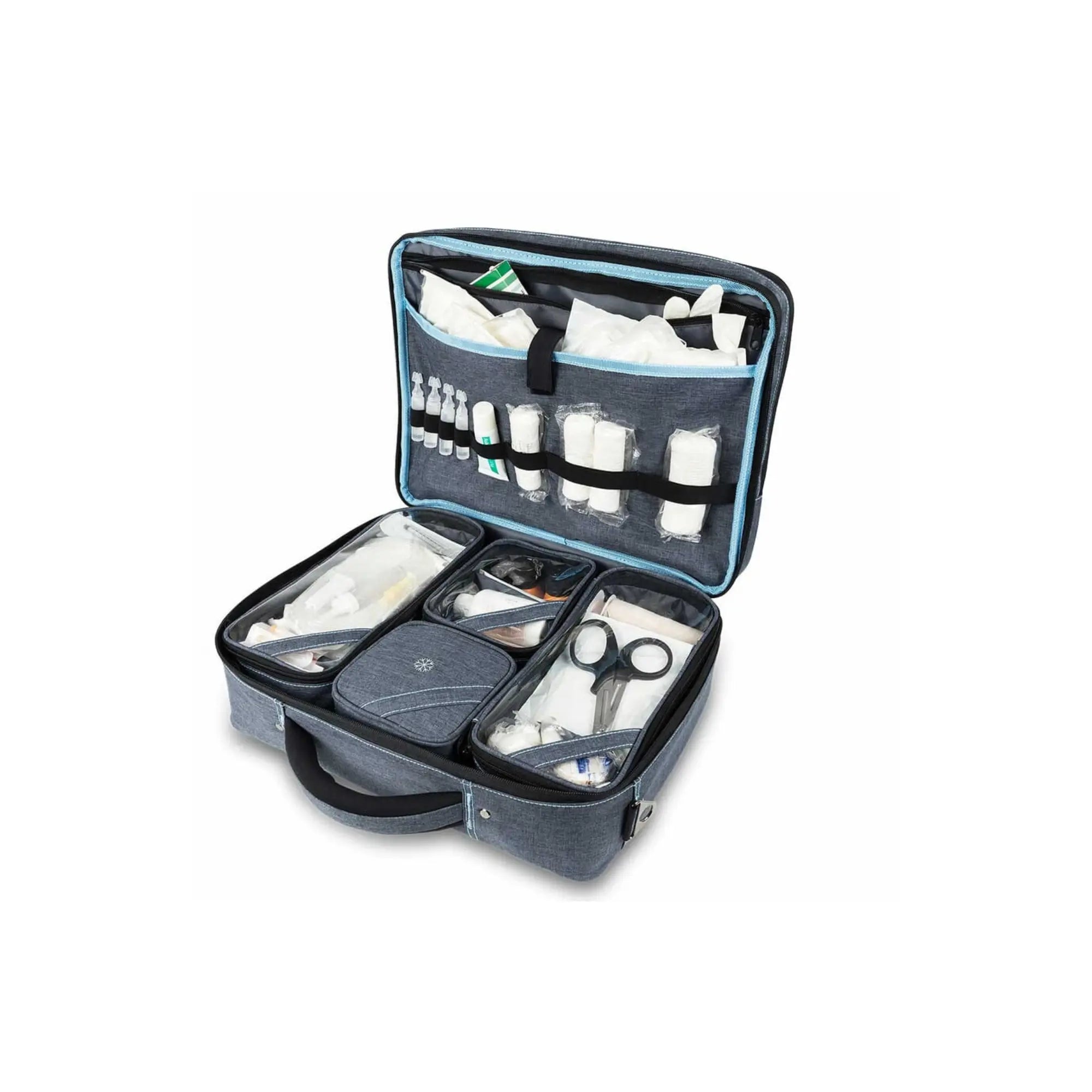 • Partie centrale équipée de 3 compartiments avec fenêtre transparente amovibles pour les instruments et le matériel