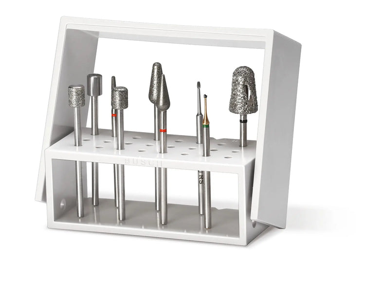 La solution idéale pour un travail précis, rapide et en douceur sur les ongles mycotiques/grypotiques ou pour enlever de grandes quantités de substance. La fraise en carbure SPEED est particulièrement adaptée au contournage ciblé des ongles mycotiques. D'autres fraises et rectifieuses spéciales de BUSCH complètent l'ensemble.