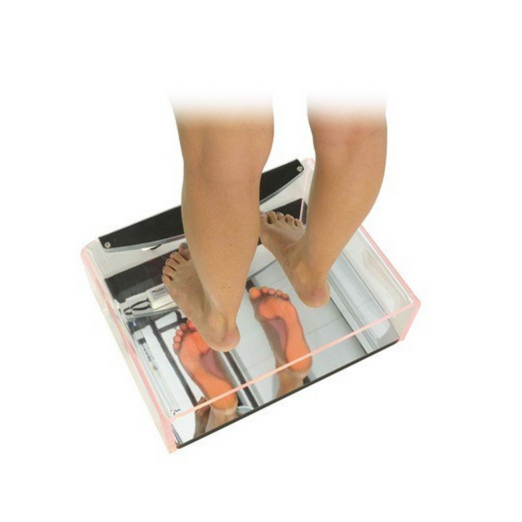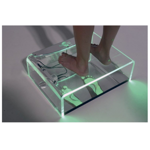 Il permet de visualiser parfaitement la voûte plantaire du pied et de mettre en évidence les zones d'appui plus ou moins sollicitées grâce à sa surface en verre éclairée par des "led" à basse consommation, très puissantes et d'une durée de vie très longue (estimée entre 60.000 à 100.000 heures d'éclairage).